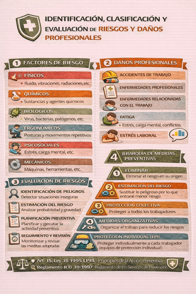 En este bloque aprenderemos a valorar la importancia de la acción preventiva y la necesidad de implantar un plan de prevención eficaz en todas las fases del sistema empresarial. Analizaremos los derechos y obligaciones en materia preventiva, tanto del/de la trabajador/a como del empresario/a, así como las diferentes modalidades de organización preventiva y la gestión de la prevención dentro de la empresa. También estudiaremos el papel de los trabajadores en la estructura organizativa en materia de seguridad y salud. Aprenderemos a identificar, clasificar y evaluar los distintos tipos de daños profesionales mediante la evaluación de riesgos, y estableceremos cuantas medidas sean necesarias para eliminar o reducir dichos riesgos. Además, trabajaremos la elaboración de protocolos de actuación ante emergencias y el diseño de un plan de emergencias para una pequeña empresa. Por último, adquiriremos los conocimientos y técnicas básicas para la aplicación de primeros auxilios en el entorno laboral.